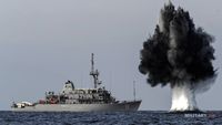 Contact mines are anchored to the ocean floor with cables that keep them floating just beneath the surface. To neutralize them, the mooring cable must first be severed, to allow the mine to bob up and become visible. Minesweepers drag along a steel wire that ends with a torpedo-shaped floater.