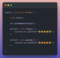 This is not specific to the question. But, I still think that it adds some value to the context. As an addition to @toni77's answer, I would like to add that the default method can be invoked from an implementing class as shown below. In the below code, the default method getGreeting() from interface I1 is invoked from an overridden method: