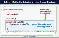 To overcome this issue, Java 8 has introduced the concept of default methods which allow the interfaces to have methods with implementation without affecting the classes that implement the interface.