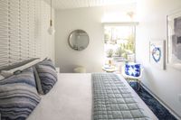 Many shelving units come with various layout options to customize the shelves and their configuration between floor-to-ceiling support posts for a permeable wall between the bed and desk that lets light through while clearly defining your workspace. A floor-to-ceiling unit only requires a few DIY skills to attach to the ceiling and arrange the shelves. Making a bedroom layout work around a desk is much easier when you don’t fight the constraints of the space but lean into them instead.