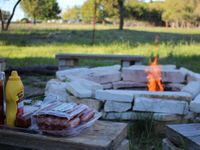 April 30, 2021 - Make sure to stagger the stones over the previous layer (you can see what I mean in the photo for this step). In the second layer (first layer of this step), I intentionally left a gap between two of the blocks to allow for oxygen flow.