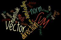 The question is now: How can one calculate the hyperplane (3)? The equations (1) and (2) tell us that any vector with a label y=1 which is closest to (3) lies exactly on the hyperplane (1), hence (1) becomes w^tx+b=1 for such x. The similar applies for the closest vectors with a negative label and (2). Those vectors on the planes called 'support vectors' and the decision boundary (3) only depends on those, because one simply can subtract (2) from (1) for the support vectors and gets: