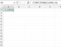 September 11, 2025 - TDIST and TTEST are two excel formulas used to calculate P-value. Here's a brief overview of each: TDIST calculates the one-tailed probability of the Student's t-distribution. It is commonly used in hypothesis testing to determine whether a sample mean is significantly different from a known or hypothesized population mean.
