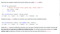 When you define a function, python creates a function object and assigns it to a name. When you define a lambda, python creates a function object but doesn't assign it to a name. This is useful in several situations but a common use case is when you want to do a small conversion but don't want to bother with writing a regular function (and having to decide what to name it). Suppose I want to take the power of some numbers, I can