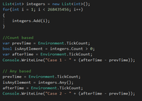 if (list == null || list.Count == 0) return; if ((list?.Count ?? 0) == 0) return; if (!(list?.Count > 0)) return; // Something else?