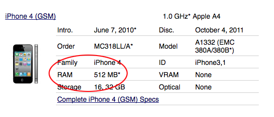 Please check the *: Apple provides no official details regarding RAM used by the %iDevice%...