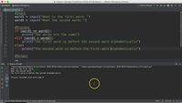 Python can compare strings with < and >: https://docs.python.org/3/tutorial/datastructures.html#comparing-sequences-and-other-types