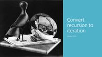 Going the other way is more complicated; in part because there can be multiple recursive calls. This means that each time we pop a stack frame there can be multiple places where we need to continue. Also there may be variables that we need to save across the recursive call and the original parameters of the call.