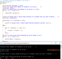 remove_element(array, index, array_length); /* First shift the elements, then reallocate */