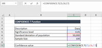 This article describes the formula syntax and usage of the CONFIDENCE.T function in Microsoft Excel. Returns the confidence interval for a population mean, using a Student's t distribution.