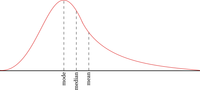 If no value appears more than once, for example for with a continuous variable, you can create a histogram and identify the bin with the highest count; the mode is the midpoint of this bin. ... Choose bin x with the highest frequency. fx - the frequency of bin x. L - lower limit of bin x. f1 - the frequency of the bin to the left (lower bin). f2 - the frequency of the bin to the right (upper bin). h - bin size. Example · Both average and median measure the central tendency of the data.