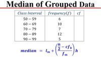 What is the formula to find the median of grouped data?