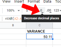 Google Sheets provides a built-in function to calculate variance, which makes life a lot easier. The VAR function is the simplest way to find variance for a set of data.