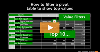 This tutorial shows you how to display a Top 10 in an Excel Pivot Table.In this video, a pivot table summarizes some product sales. With a Top 10 Filter, I c...