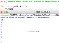 August 10, 2023 - To print the first 10 natural numbers in reverse order using a for loop in Python, we can use the range() function with the following parameters: range(10, 0, -1).
