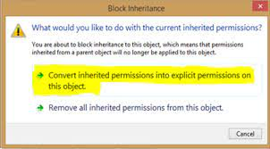 - On the Permissions tab, Disable inheritance, removing all inherited permissions.