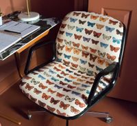 February 2, 2023 - To my surprise the back of the chair is just cardboard with upholstery tape around it. It’s funny how different furniture looks when you start taking it apart and tipping it upside down! If the pattern is complex, I would usually take off the upholstery before redoing it, in order to use the existing upholstery as a pattern for the new fabric.