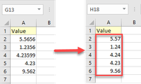 - the value with decimals is entered in column A