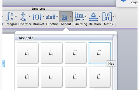 >blank box with ^ above it will appear in the Equation Box