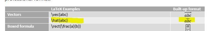 How to put the "hat" to a letter in onenote? In latex it works, but not in onenote...