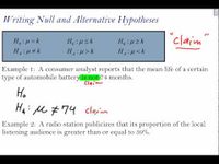 more than or less than 50%. The Null and Alternative Hypotheses looks like: H0: p = 0.5 (This is ... They want to test what proportion of the parts do not meet the specifications. Since they claim · that the proportion is less than 2%, the symbol for the Alternative Hypothesis will be <. As is the