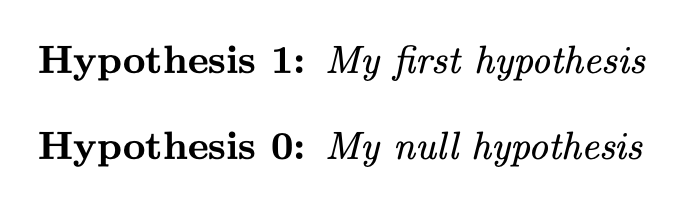I have two hypotheses. One effect hypothesis (number 1), and a null hypothesis (number 2). How do I make the null hypothesis appear as Hypothesis 0 instead of Hypothesis 2? I.e. I want to change the More on tex.stackexchange.com