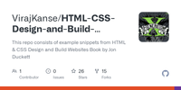 GitHub - VirajKanse/HTML-CSS-Design-and-Build-Websites-by-Jon-Duckett: This repo consists of example snippets from HTML & CSS Design and Build Websites Book by Jon Duckett · GitHub
