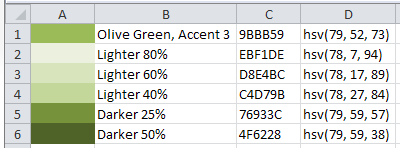 The color named "Olive Green, Accent 3, Lighter 60%" is part of the Excel palette.