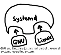 I'd just like to interject for a moment. What youโre referring to as Linux, is in fact, GNU/Linux, or as Iโve recently taken to calling it, GNU plus Linux. Linux is not an operating system unto itself, but rather another free component of a fully functioning GNU system made useful by the GNU corelibs, shell utilities and vital system components comprising a full OS as defined by POSIX. Many computer users run a modified version of the GNU system every day, without realizing it. Through a peculiar turn of events, the version of GNU which is widely used today is often called โLinuxโ, and many of its users are not aware that it is basically the GNU system, developed by the GNU Project. There really is a Linux, and these people are using it, but it is just a part of the system they use. Linux is the kernel: the program in the system that allocates the machineโs resources to the other programs that you run. The kernel is an essential part of an operating system, but useless by itself; it can only function in the context of a complete operating system. Linux is normally used in combination with the GNU operating system: the whole system is basically GNU with Linux added, or GNU/Linux. All the so-called โLinuxโ distributions are really distributions of GNU/Linux.