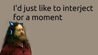 I'd just wike to intewject fow a moment. What you'we wefewwing to as Winux, is in fact, GNU/Winux, ow as I've wecentwy taken to cawwing it, GNU pwus Winux. Winux is not an opewating system unto itsewf, but wathew anothew fwee component of a fuwwy functioning GNU system made usefuw by the GNU cowewibs, sheww utiwities and vitaw system components compwising a fuww OS as defined by POSIX. Many computew usews wun a modified vewsion of the GNU system evewy day, without weawizing it. Thwough a pecuwiaw tuwn of events, the vewsion of GNU which is widewy used today is often cawwed "Winux", and many of its usews awe not awawe that it is basicawwy the GNU system, devewoped by the GNU Pwoject.