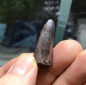 This small and rather unprepossessing object is one of Te Papa's most valuable treasures - a fossil iguanodontid tooth with a worn crown.