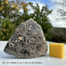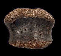 A Quality Iguanodon bernissartensis vertebra, an early Cretaceous herbivore from the Isle of Wright, UK. This vertebra is highly mineralized and quite heavy. Great rich dark brown color. No repair or restoration. Legally collected in the Wessex Fm., Isle of Wright. Authenticity guaranteed. Note - this specimen weighs 1.85 pounds and will require supplemental postage for international orders. · DU01 SIZE: 3" Length ; 4" Wide · Link to Herbivore bones