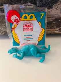 October 29, 2024 - Iguanodon appears in the booklet of Jurassic Park DNA case. Iguanodon and Plesiosaurus figure in one package. Collector's card shows two Iguanodons. A couple of Iguanodon figures were featured; one as part of their "Li'l dinosaurs" assortment, and another different figure was packaged, but erroneously labeled, as part of the "Thundering Trike" playset.