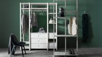 Many of our shelf units for wardrobes are suggested combinations. You get shelves, baskets and clothes rails in different fixed widths and heights. This gives you a good starting point when planning your own closet.