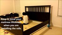And some parts look different in the pictures then my bed. But overall it is my bed plus I did double-check that Hemnes is the mode name on the frame. There are 4 screws with nuts on them, holding the sides of the frame to the headboard and foot of the bed. But they are in these weird little circle openings that I can’t fit a socket wrench in to remove the nut. And I definitely can’t fit a drill or screwdriver in there either.