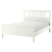 HEMNES Bed frame - white stain Queen. The sturdy solid pine frame has natural variations in grain, color and texture, giving every piece a unique look. And it has been stained and lacquered making it more durable and easy to care for. Slatted bed base and mattress sold separately.