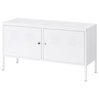 IKEA PS Cabinet - white 119x63 cm (46 7/8x24 3/4 "). A cord outlet underneath makes it easy to gather all cords in one place. The door is lockable so your possessions stay safe. Tall legs make cleaning easy. Lock and 2 keys included.