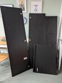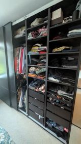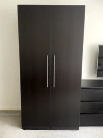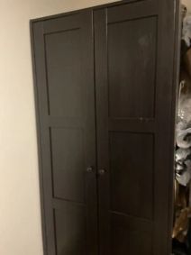 I need some help as I’m facing a bit of a conundrum. I moved into my house 5 years ago and the previous owners left behind a bunch of Pax wardrobes, but they didn’t have doors. It always bothered me because I thought it looked messy but I didn’t want to spend the money to buy the doors. Now I’m looking to buy them and realizing black brown was discontinued (cry). All the furniture in my bedroom is black brown, including the existing Pax wardrobes. Seems my choices now are white, tan, dark grey and light grey. Will any of these look okay being on a black brown base or am I just SOL?