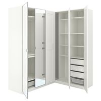 PAX / GRIMO/ÅHEIM Corner wardrobe - white/white mirror glass 82 7/8/63 1/4x93 1/8 ". 10-year Limited Warranty. Read about the terms in the Limited Warranty brochure. You can easily adapt this ready-made PAX/KOMPLEMENT combination to suit your needs and taste using the PAX planning tool.