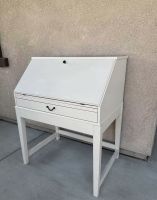 Discover the elegant IKEA vintage ALVE hidden secretary desk, featuring hidden storage, antique style, and ample workspace in a sleek white finish.