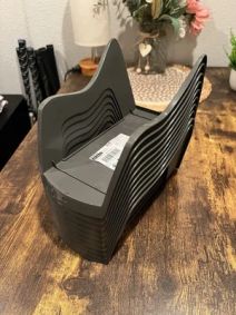 TJUSIG Shoe rack - black 31 1/8x12 5/8x14 5/8 ". If you need more storage space for your shoes, simply stack one shoe rack on top of another. Holds approx. 6 pairs of shoes. Connection hardware for stacking 2 shoe racks is included. Coordinates with other products in the TJUSIG series.