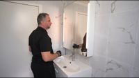 Installing A High Cabinet And A Mirror Cabinet With Built in Lighting ...