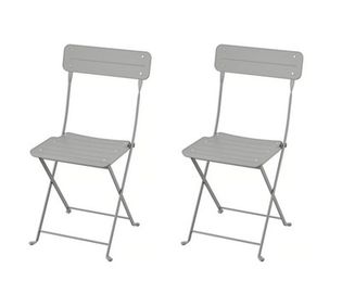 This is an IKEA outdoor furniture set with folding chairs, perfect for enjoying your patio or balcony; the set includes two chairs that are used and in good condition.