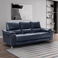 With its contemporary design, the Indigo Bay Sofa brings modern appeal to your space. Featuring power recline and power headrests on each end seat, you can easily configure your ideal position for ultimate comfort. Soft, supportive seats and backs are complemented with cushioned arm rests and built-in USB’s for convenient charging of mobile devices.Indigo Bay’s deep blue leather upholstery anchors any room with a luxurious aura. Its clean lines and angled metal legs complete this sofa’s sleek look. The Indigo Bay Leather Power Reclining Sofa seamlessly combines the look of stationary with the