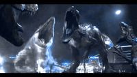 I can buy that the Indominus might be able to breathe underwater, but I definitely don't think it would be able to defeat the Mosasaurus in an underwater fight.
