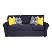 Classic style and customizable fabrics. This cozy sofa seats three and has a frame crafted from solid and engineered wood with elegant turned legs, recessed arms, and a cushion back.