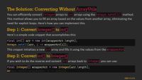 List<T>.toArraywon't work because there's no conversion fromIntegertoint- You can't use