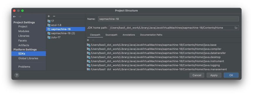Notice how the location of the selected JDK is shown in the JDK home path field.