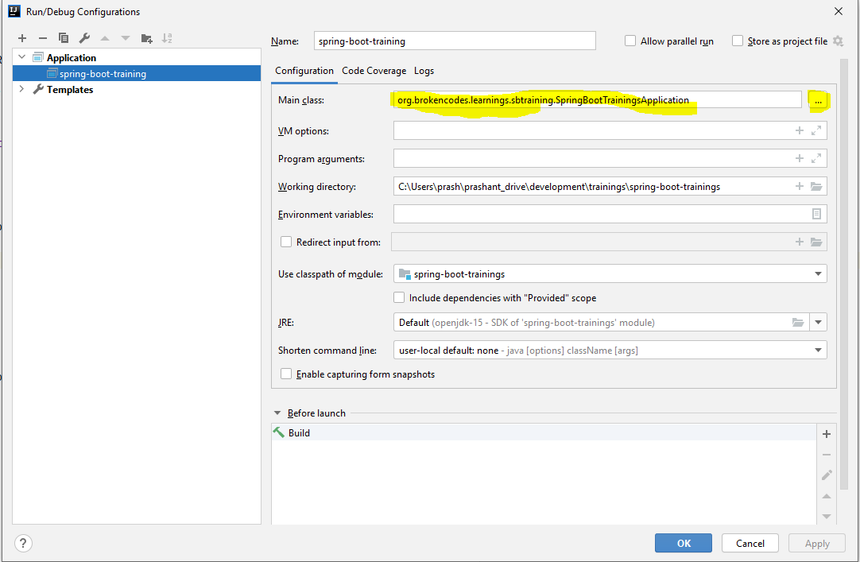 Now you just need to provide the name of the main class. You could click on the browse button(