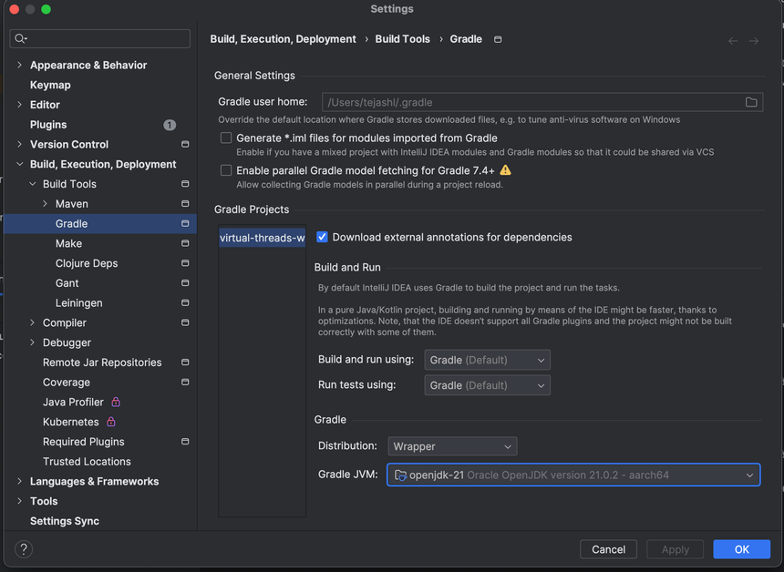 I followed a few options mentioned above, but nothing worked. The main problem was that the Gradle plugin was configured to use an older JDK version. I had to change it in the below settings to use JDK-21. After changing the JDK here, then everything worked fine.